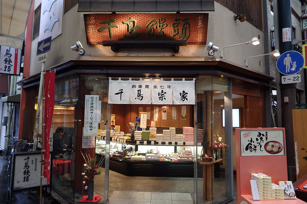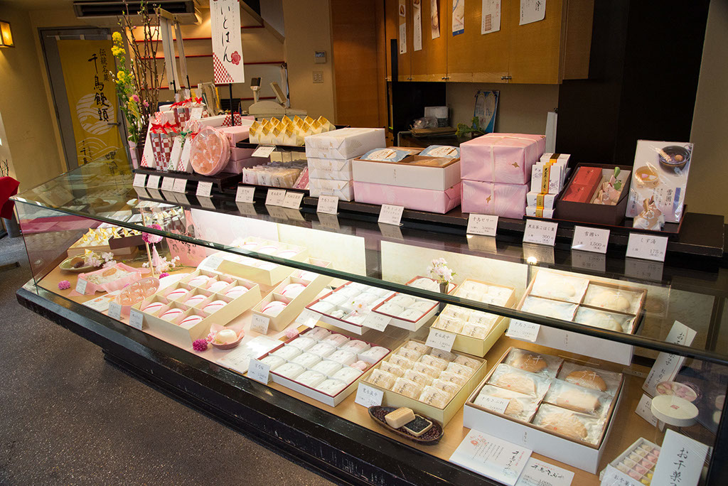 寛永七年創業以来、伝統の技で菓子の心を今に伝えております。代表銘菓の本千鳥饅頭はふわっと口どけのよい白餡が特徴です。他にも、季節限定の生菓子もご用意しています。お土産、ご進物にもどうぞ。