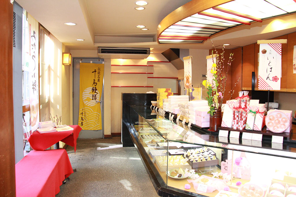 寛永七年創業以来、伝統の技で菓子の心を今に伝えております。代表銘菓の本千鳥饅頭はふわっと口どけのよい白餡が特徴です。他にも、季節限定の生菓子もご用意しています。お土産、ご進物にもどうぞ。