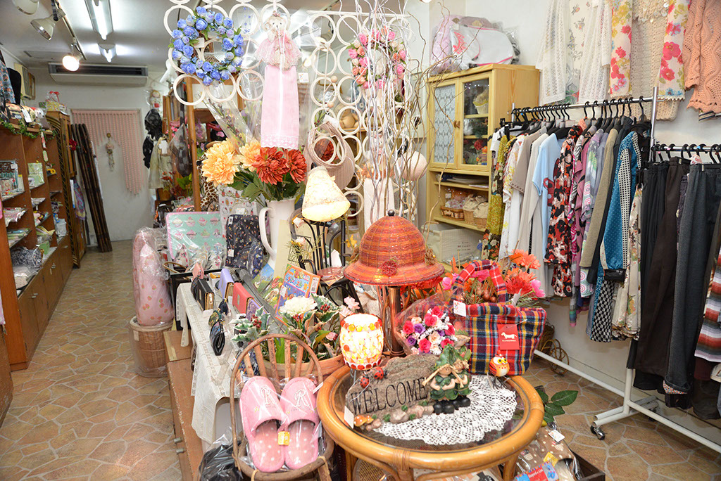 おしゃれな婦人服バッグをはじめ、可愛いエプロン、スリッパ、クッション、タオルなど日用雑貨のほか、アレンジフラワー、プレゼント、ギフト商品も多数取り揃えています。お気軽にお越しください。