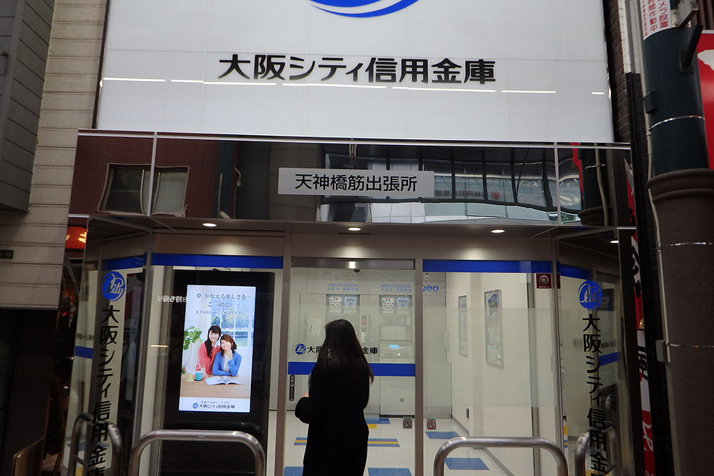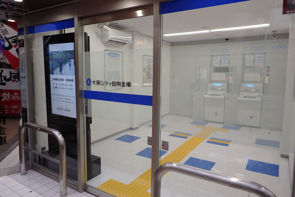 平日21時まで、土日祝日も17時までご利用いただける大阪シティ信用金庫のキャッシュコーナーです(無人)。大阪府下に本店を置く信用金庫へのご入金・お引きだしは、曜日と時間を問わず手数料無料!!(お振り込みは料金が必要です)